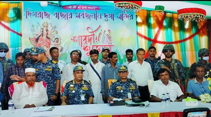 এস এম তাজ উদ্দিন বাগেরহাট থেকে ;   শারদীয় দুর্গাপূজা শান্তিপূর্ণ ও আনন্দঘন পরিবেশে উদযাপনের লক্ষ্যে তৎপর রয়েছে নৌবাহিনী। বাগেরহাটে অন্যান্য আইনশৃঙ্খলা বাহিনীর পাশাপাশি পূজা মন্ডপের নিরাপত্তায় কাজ করছেন নৌবাহিনীর