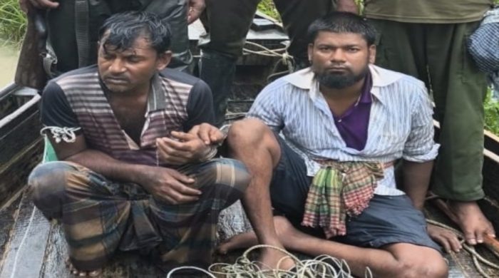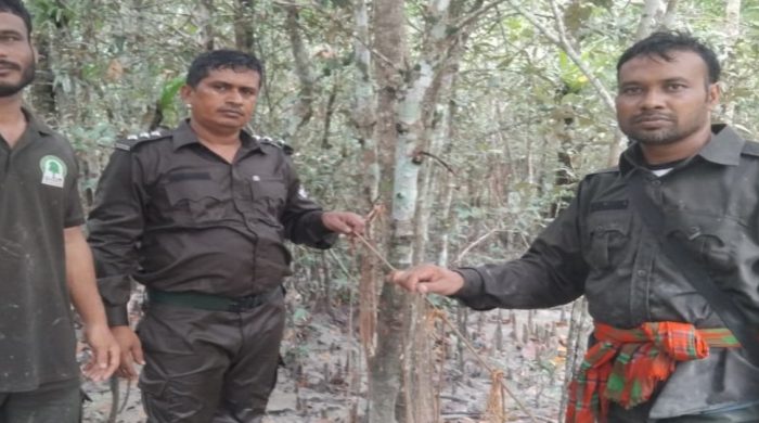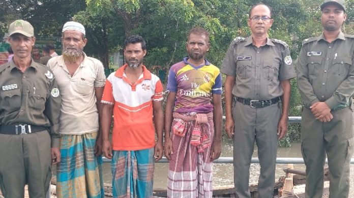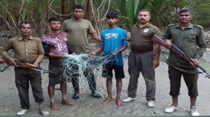 শরণখোলাঃ পূর্ব সুন্দরবনের কচিখালী অভয়ারণ্যে মঙ্গলবার হরিণ শিকারের সময় আটক দুই শিকারী।   ষ্টাফ রিপোর্টার:   পূর্ব সুন্দরবনের কচিখালী অভয়ারণ্যে মঙ্গলবার সকালে হরিণ শিকারের সময় দুই শিকারীকে আটক করেছে বনরক্ষীরা।