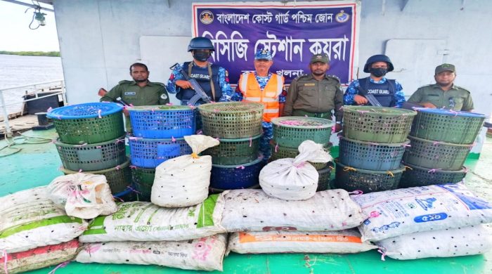 সৈকত মোঃ সোহাগ খুলনা অফিস: সুন্দরবনে নিষিদ্ধ সময়ে অবৈধভাবে  কাকড়া ধরে বাজারজাত করার জন্য নিয়ে এসেছিলো অজ্ঞাতনামা  জেলেরা।  কোস্টগার্ডের অভিযানে ট্রলার বোঝাই কাকড়া ফেলে পালিয়ে যায় ঐ জেলেরা।  ৮৫০ কেজি