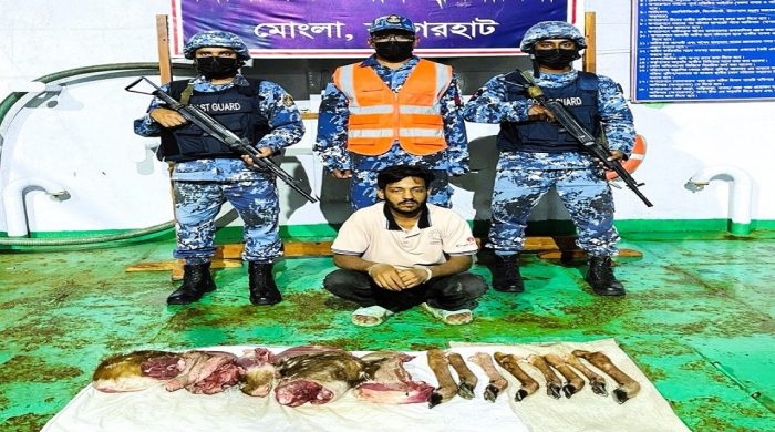 মাহমুদ হাসান, মোংলা প্রতিনিধি   সুন্দরবন থেকে হরিণ মেরে তা পাচাঁরের সময় এক চোরা শিকারীকে আটক করেছে কোস্ট গার্ড। শুক্রবার রাত ২টার দিকে জয়মনির সাইলো সংলগ্ন এলাকা থেকে হরিণের মাংস,