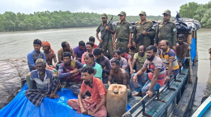 ছবির ক্যাপশনঃ পূর্ব সুন্দরবনের দুবলারচরে বৃহস্পতিবার সকালে বনরক্ষীরা তিনটি ট্রলারসহ ২৭ জেলেকে আটক করেছে।##   ।।ষ্টাফ রিপোর্টার।। পূর্ব সুন্দরবনের দুবলারচর এলাকায় বৃহস্পতিবার সকালে অবৈধভাবে মাছ ধরার সময় বনরক্ষীরা ২৭ জেলেসহ