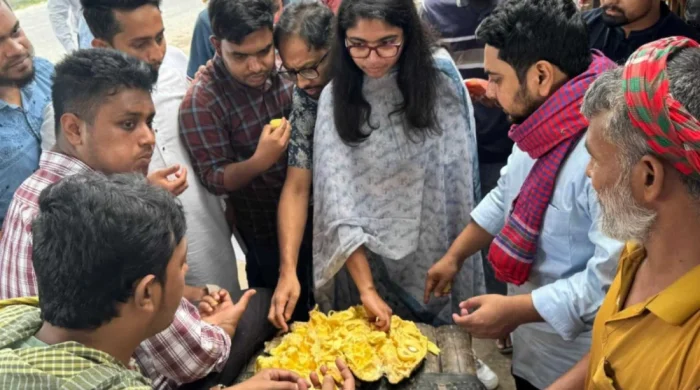রংপুরে রাস্তায় দাঁড়িয়ে কাঁঠাল খেলেন নাহিদ-হাসনাত-সার্জিসরা